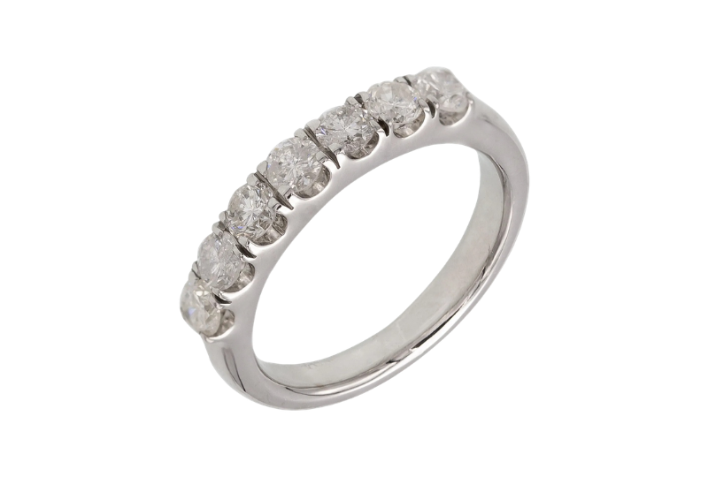 A meia aliança é um anel composto por uma sequência de diamantes ou pedras preciosas enfileiradas apenas na parte superior do aro. Diferente da aliança inteira, que possui pedras em toda a circunferência, a meia aliança possui pedras apenas na metade do anel.