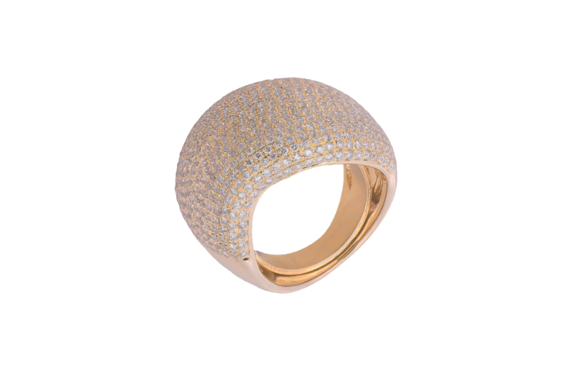 O anel pavê é caracterizado por possuir várias pequenas pedras cravadas muito próximas umas das outras, criando um efeito visual de superfície “pavimentada” de diamantes. A palavra pavê vem do francês pavement e significa justamente pavimentado.